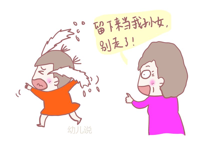 丹丹跟爸爸到亲戚家拜年,临走时,一位亲戚老太太假装要丹丹的爸爸先走,而让丹丹留下来当她的孙女。看到丹丹执意要走时,还假装拖着丹丹要把她“关”起来,吓得丹丹哇哇大哭。不理解的爸爸还在一旁帮着对方说话:“你就当她的孙女一天,爸爸明天过来接你!”丹丹哭得更厉害。老太太皱皱的脸孔,未知的小黑房,跟爸妈分离……真的太可怕了。