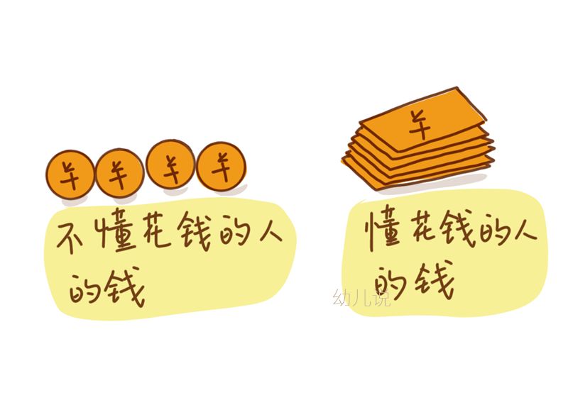 我接着说:“未来,你就可以用零花钱买自己喜欢的玩具,可是妈妈需要告诉你一个有关‘幸福的人的花钱心得’——那些一有钱就花掉的人,他们的钱是‘圆’的,一下子就滚走,永远也不够花;有计划、懂积累的人,他们的钱是‘扁’的,可以一块块地叠起来,越来越多,这样他们想花钱时,永远都有。