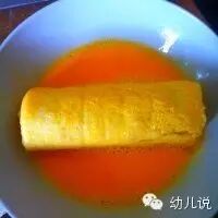 6、全部卷好后,将一个个吐司香蕉卷放到蛋液里蘸满蛋液,小心不要散掉;
