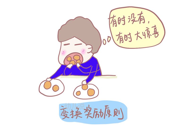 大家一定见过街上的钓玩具机,为什么总是不乏迷恋它的小朋友和大人?采用的便是变换奖励原则。孩子们操作玩具机时,有时一个也钓不到,有时能钓到巨大无比的超值毛绒公仔,有时甚至连续几次都能钓到……只要孩子经历过“惊喜”,从次难以让孩子远离玩具机了。知道了这一心理机制带来的负面心理影响,我们便要让孩子们从一开始便要远离街上的钓玩具机。但我们可以利用变换奖励原则,帮助孩子养成某些良好的行为习惯。