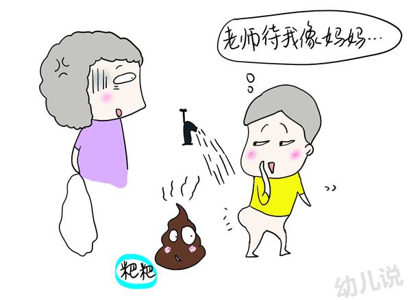 倘若孩子提到,某某老师因为孩子拉粑粑露出嫌弃的表情,也要尽量从积极的方面引导。比如,老师是看到粑粑感觉恶心,而不是因为你拉粑粑而感觉恶心……