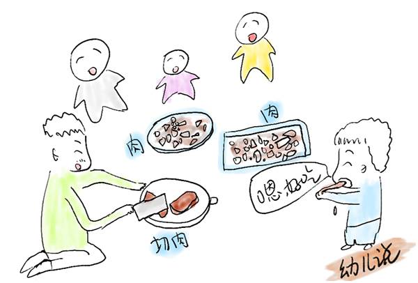 拜祭完之后,大人们会先扯一些鹅掌、鹅翅给嘴馋的小孩子吃,然后“叮叮咚咚”在墓地旁用菜刀把肉类砍成一块块,糕点分成一盘盘,最后全部人聚在一起“吃大餐”。