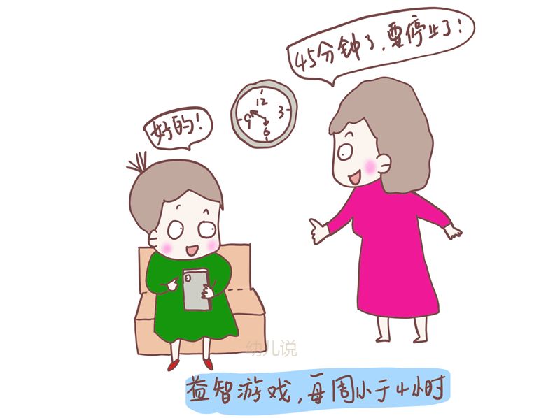 一般来说,孩子玩手机和平板游戏,每天不应该超过1小时,年龄越小的孩子应该越少。2004年澳洲有过专门的电子游戏研究,研究者邀请了3000个孩子参与,最后的研究结论是:每天超过1小时电子游戏的孩子,会出现无法专注和情绪暴躁的行为;而每周不超过4小时电子游戏的孩子,在读写和算术上却有不错的表现。