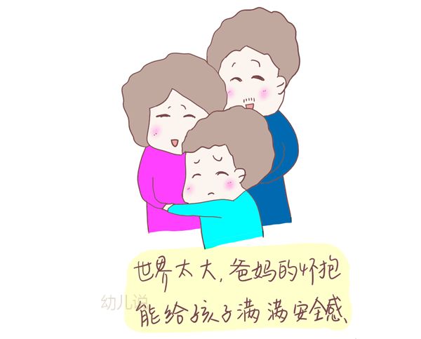 我们常常说,不仅宝宝需要拥抱,小孩子也需要每天跟爸妈“抱抱”汲取安全感。因为世界太大,他们太小了,只有父母的怀抱才是安全感满满的栖身之所,就像树上稚嫩的鸟宝宝常常需要“叽喳叽喳”呼唤鸟妈妈,确保妈妈在身边。所有大自然生物都遵循“陪伴→安全感”的心理规律。