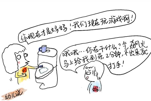 “你当妈妈,我当叮当,你要监督我刷牙、洗脸、穿衣服、穿鞋,直至出门,游戏才结束。”