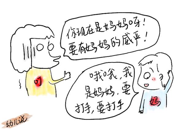 所以,我现在也会经常跟孩子玩其他的角色互换游戏:比如“叮当哭闹着要吃冰淇淋”、“叮当不愿睡觉”、“叮当总是看电视”、“叮当不洗澡”、“叮当吵哄哄”、“叮当抢玩具”、甚至“叮当不写作业”……角色互换游戏,让我理解了一个好妈妈应该有的行为,也让叮当知道了自己的行为、懂得了如何成为更好的自己。虽然每一次游戏都带着磕碰,虽然游戏也花费了我不少的时间和精力,但是,一切都是值得的,因为,叮当现在非常自律,很少需要爸妈催促了。