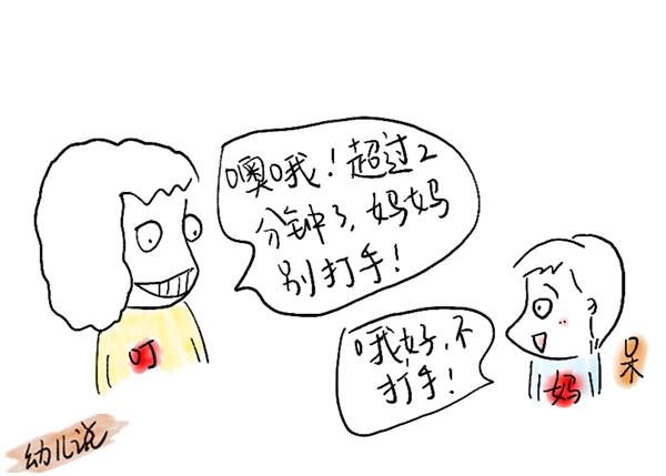 “噢哦,超过2分钟了,妈妈别打手。”