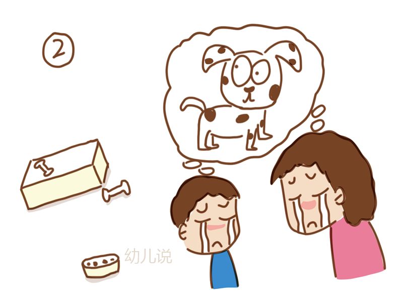 回家后,孩子看到狗狗的饭碗以及狗狗床,突然就后悔大哭,还跟妈妈说:“狗狗是我最好的朋友”。