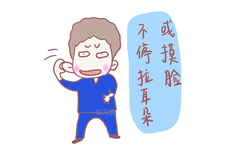 场景:几位小朋友和家长一起玩耍,有一位妈妈发现自己的儿子坐在座位上,不停地摸脸,有时还狠狠地拉扯耳朵,脸颊有些发红。“你怎么啦?”妈妈问。小男孩摇头。