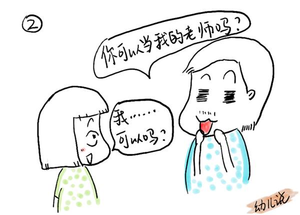 小鸯的爸爸有一天看了幼儿说去年的《不识字妈妈辅导孩子》一文,便跟一脸沮丧的女儿说:“其实爸爸以前上学的时候学习也很差劲(制造同理心,拉近距离),当时爸爸的老师只是高中毕业的一些人,你看你现在的老师都是研究生,爸爸很羡慕你啊。所以啊,你以后能当我的老师吗?爸爸想把糟糕的学习补回来。”