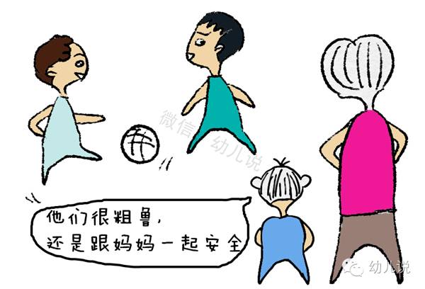 幼儿说,经常给孩子灌输其他小朋友粗鲁、打人、不友好等负面信息,会让孩子胆小内向,不敢跟人交往,甚至会养成自闭、不相信他人的性格。鼓励孩子跟他人交往,遇到问题尝试让孩子自我解决,才是为人父母需要做的。