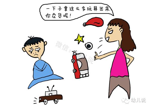 幼儿说,玩具到底是用来“收藏”的还是”玩耍 “的呢?玩具没拿出来玩,就已经失去了玩具的价值,试问还买玩具干啥呢?单独玩某个玩具只能有一种花样,但如果全部玩具凑在一起,能诱发孩子的想象力,说不定孩子能创造出一个多彩的世界呢!建议让孩子玩完后习惯收拾就好。