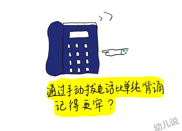 让两个差不多年龄、差不多智商的小孩记忆一组电话号码。其中一个孩子通过在电话机上拨打电话号码,而另一个孩子通过单纯的背诵记忆,结果前一个小孩记忆得更牢固。因为一个孩子做出某个动作,不仅需要调动大脑,还需要小脑协调作用,实质上动作增加了记忆的提取强度。