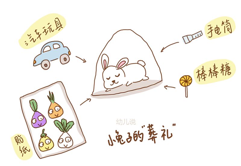 正如幼儿说在前面提及的,孩子与小动物天性亲近,当陪伴他们长时间的小宠物离开了,孩子们一定会伤心难过。面对孩子的悲伤,父母们不要嘲讽也不要批评孩子不够坚强,就像上面的给小兔子举办葬礼的做法,通过行动帮助孩子慢慢平复情绪。