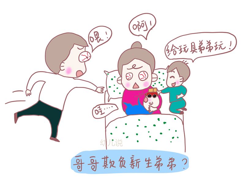 新生弟弟从医院回到家,3岁的哥哥“嘻嘻哈哈”地把玩具举到弟弟面前,嚷嚷说“玩具给弟弟玩”,冷不防就把玩具砸在了弟弟的眼睛上。小婴儿“哇哇”大哭,大人们大惊失色,呵斥哥哥走开,爸爸看到小儿子的眼睛一下子发红,愤怒得往大儿子的手掌上狠狠地打了几下。小宝宝在哭,大孩子也在哭,产后妈妈刚回家第一天就糟心。