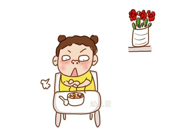 有一个小女孩,妈妈把她抱上儿童餐桌上吃饭,可孩子抓起勺子吃了两口,就开始闹着要下去。被妈妈教育了一番后,孩子虽然安静了,但拿着勺子拨弄饭食,就是不往嘴巴里送。被妈妈问“为什么不吃饭”说,小女孩说“饱了”。看到满满的饭菜,妈妈不相信,还批评了孩子。小女孩趁妈妈进厨房瞬间,故意把饭碗推倒,饭碗摔地上全洒了……