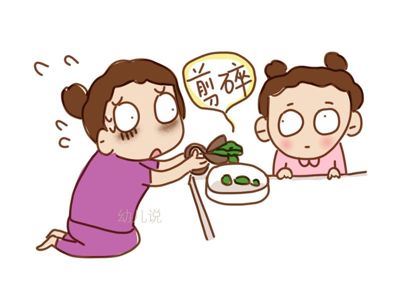 有些家庭认为小朋友不爱吃饭,是因为食物太硬或蔬菜太长。所以很多家庭就特意把食物煮得软烂,蔬菜和肉食还用剪刀剪得小小的。事实上小朋友不想吃的常见原因不在此,即使大人经常把食物做得细细烂烂的,也不见得小朋友会爱上吃饭。