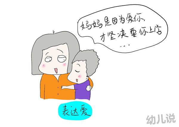 在消退法过程中,比如一个初入园的孩子会因为父母“甩头就走”而感到难过,所以父母在孩子初入园的头一个月或2,3个月内尤其要多陪伴和关注孩子,还可以常常有意无意地给告诉孩子“所有孩子都必须上学,爸妈坚决让你上学不是不爱你,而是因为爱你才让你上学”。这类心理确认会让孩子更快适应新生活。