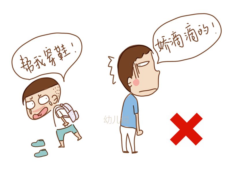 有时孩子答应了上幼儿园,却在穿衣穿鞋上磨磨蹭蹭,还无数次跟爸爸妈妈说“帮我穿”,有些父母会坚定地以为,孩子是在故意拖延不想上学,继而指责批评孩子。大多数情况下,这其实是小朋友的“测试”,他们承受着分离焦虑,他们内心只想确认一点:“爸爸妈妈不顾我反对,坚持把我送到我不喜欢的幼儿园,爸爸妈妈是否真的爱我?”他们想求证一下,父母坚持把他们送进幼儿园,不是因为不再爱自己……虽然他们有时连自己也不知道有这样的心理需求。