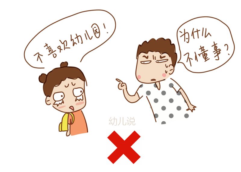 最明显的做法是“恐吓”——“再不想上幼儿园,以后你就留在幼儿园跟保安叔叔睡,别回家了”,导致本来已经从床底爬出来的孩子,由于恐惧而再次爬进了床底。今天,幼儿说整理了父母们的一些错误做法。