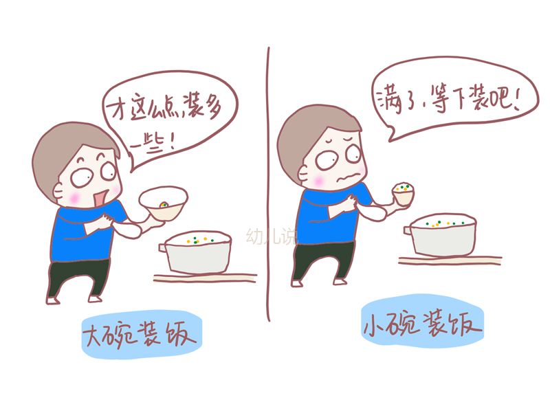 所以,小碗应该给胖孩子用,大碗应该给瘦孩子用,父母用这个原则,会让孩子吃饭更“顺利”。