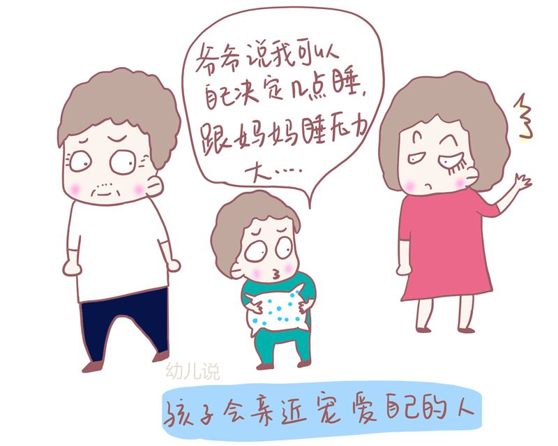 儿子瓜瓜3,4岁时,有一天晚上临睡前,他直接走进房间,悄无声息地就把他的小被子小枕头全部抱进了爷爷奶奶房间。我感觉奇怪,他说:“爷爷说,我可以自己决定晚上几点睡觉,跟妈妈睡压力太大……”