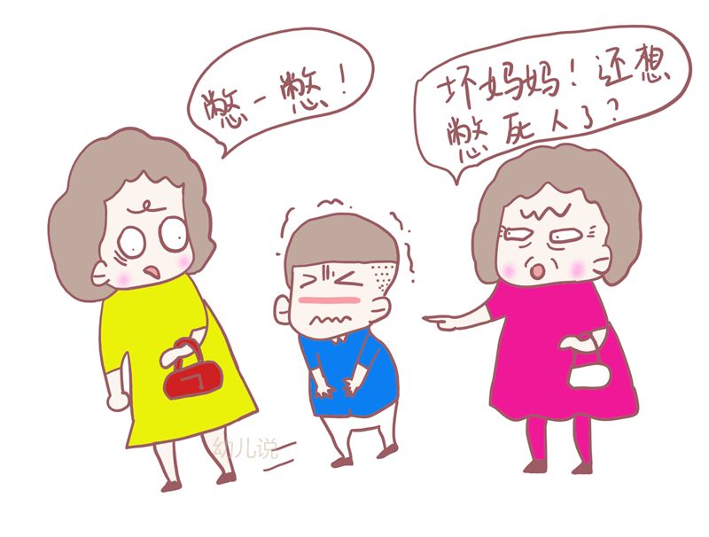这时奶奶拉过孙子,说:“不哭不哭,就在这里尿,坏妈妈!还想憋死人了?”