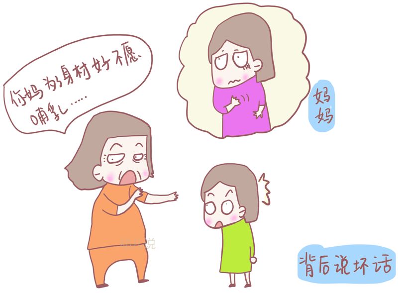 有一位朋友,她说小时候曾经对自己的妈妈有很深的误解。她4,5岁的时候,奶奶带她出外走亲戚,亲戚家刚好有位哺乳妈妈。奶奶跟她说:“你妈妈对你不好。你出生后,你妈妈为了身材不愿意哺乳,所以你现在才这么瘦,你看人家小宝宝都比你胖!”回到家后,她看到妈妈,真的觉得妈妈的身材比其他妈妈好看,但越看越感觉心里不舒服。她不仅不愿跟妈妈打招呼,连妈妈要抱抱她也不让。两年后,她的妈妈乳腺癌复发离开了,她才理解了妈妈当初为什么没哺乳……