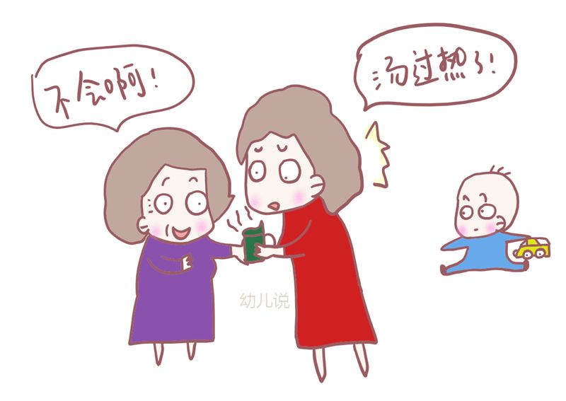 姥姥说”不会,平时都是这样给宝宝喝的,温度刚刚好……再放就凉了!”