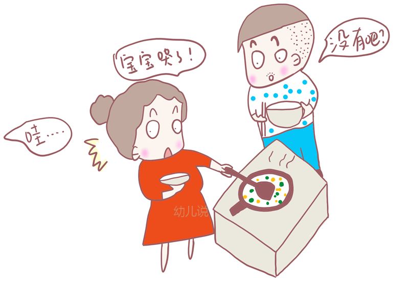 两夫妻在厨房做饭,炒菜的油炸声充满整个屋子。正在炒菜的妈妈突然跟爸爸说:“宝宝哭了,你去看看怎么回事!”