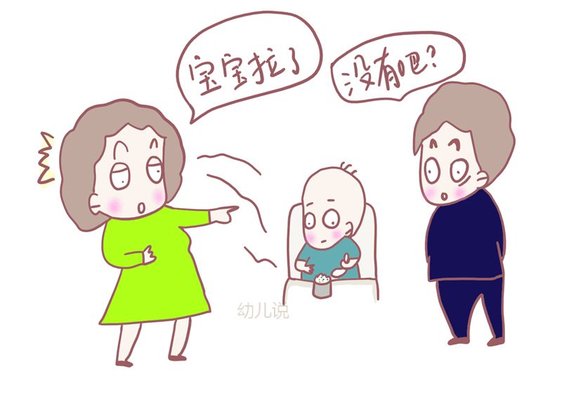 餐厅里,宝宝坐在婴儿餐桌上吃饭,这时一位妈妈大叫:“不好,宝宝拉了!”