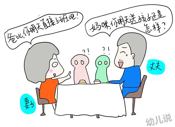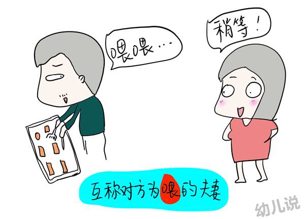 在一次亲戚家聚餐,饭桌上一亲戚(男)直呼妻子:“妈咪,你明天带儿子去幼儿园还是我带?”妻子也回答得很自然:“我带就行,你跑来跑去累人,爸比你直接上班就好……”他们的孩子在一旁大口大口地啃着鸡腿。