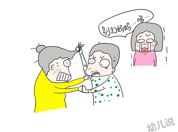 实验人员认为,孩子目睹争吵会带来不安和恐惧,越小的宝宝越是如此。如果争吵的陌生人换成爸妈,给孩子带来的恐惧感会更大,倘若再换成打架等有肢体冲突,后果就更糟糕了。我们作为父母,常常担忧暴力电视和暴力动画片会给孩子带来不良影响,自己却时常在孩子面前进行“现场直播”。心理学家Steven Stosny经过长期的研究发现,一个看到妈妈被爸爸殴打的孩子,比孩子自己被殴打所带来的心理伤害更大。