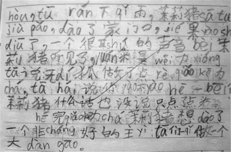 这位妈妈说:“一看就知道不是孩子做的,孩子们才学完拼音,这么多文字、这样的整齐程度……我想不明白,老师到底是愚蠢还是故意的?”