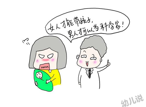 周末,幼儿园门前的小路上,有几位孩子在玩“过家家”。我路过的时候,听见了一位小男孩的高声抗议:“不行!做饭、洗衣服、带孩子都是女孩子的活儿,我们男孩子不会做的……我扮演去挣钱就行……”