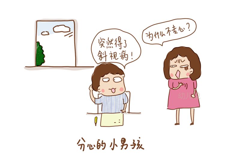 妈妈批评小男孩不专心,小男孩一脸无辜地说:“我的眼睛生病了!”