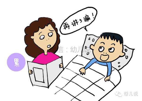 “不讲了,我们要睡觉了!”妈妈已经累得眼皮盖都撑不起来了,眯着眼睛跟孩子说。