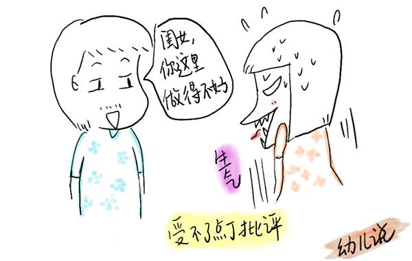 经常浸在称赞的甜水缸子里的孩子,会对丁点儿的负面评价非常敏感。比如一个经常被家人称赞的孩子,在外玩跳绳时被同龄小朋友说他跳得不够好,孩子可能便会生气地丢掉绳子,冲过去打别人或把别人推倒在地;如果是内向些的孩子,他们可能会非常难过,继而拒绝继续玩或直接回家。经不得半点批评的孩子,其实也是情商不高的表现,是在只有称赞没有批评(批评≠打骂)的家庭环境培养出来的人格缺陷。