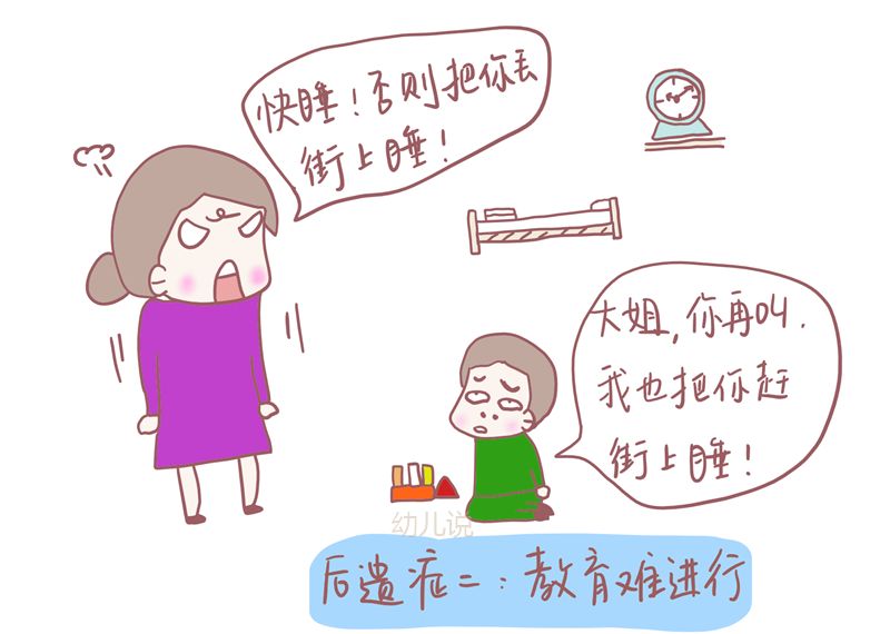 有位妈妈曾经给我留言,说她的儿子总是很晚才睡觉,经常怎么耐心劝说都没用,有时烦了便威胁孩子说:“你再不睡我就把你赶到街上睡!”一开始的确有作用,孩子动作很利索。