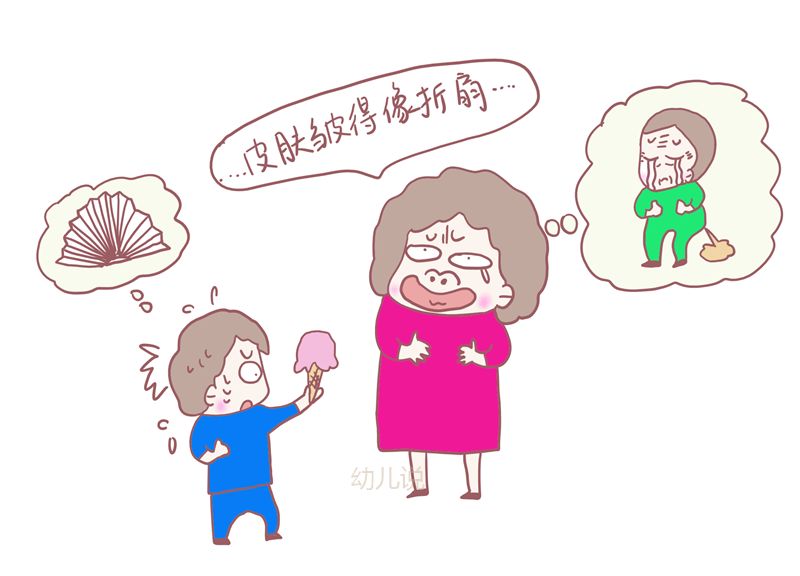 “你确定你要吃吗?我有个同事的小孩,因为吃太多冰淇淋,拉肚子拉了一个月,因为缺水太多变成了一个老头的样子,皮肤皱得像折扇!”