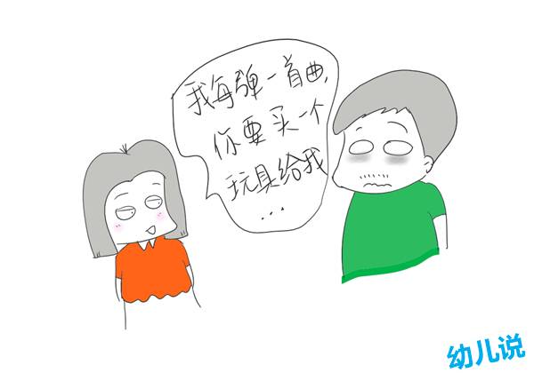 有一次到一亲戚家做客,亲戚家有位7岁的小女孩,弹得一手好钢琴。小女孩的妈妈想让孩子弹一曲给客人听,孩子有些犹豫,那位妈妈哄着孩子说:“快!弹得好奖励一颗巧克力糖!”