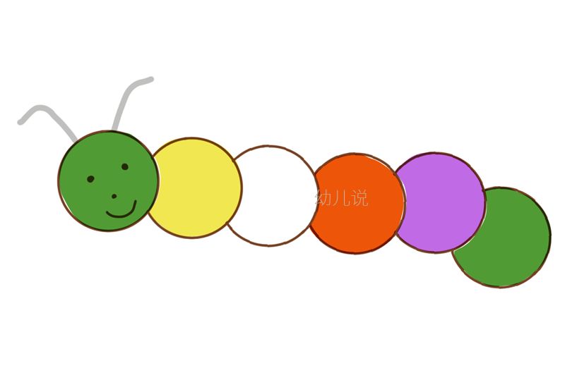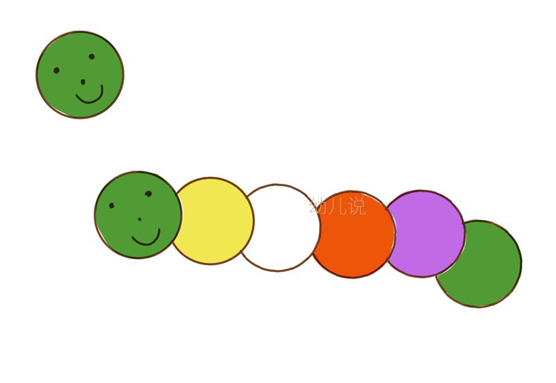 步骤1,剪出闲置的纸箱皮,剪成圆形,涂上喜欢的颜色,选择一个圆做毛毛虫的头部。