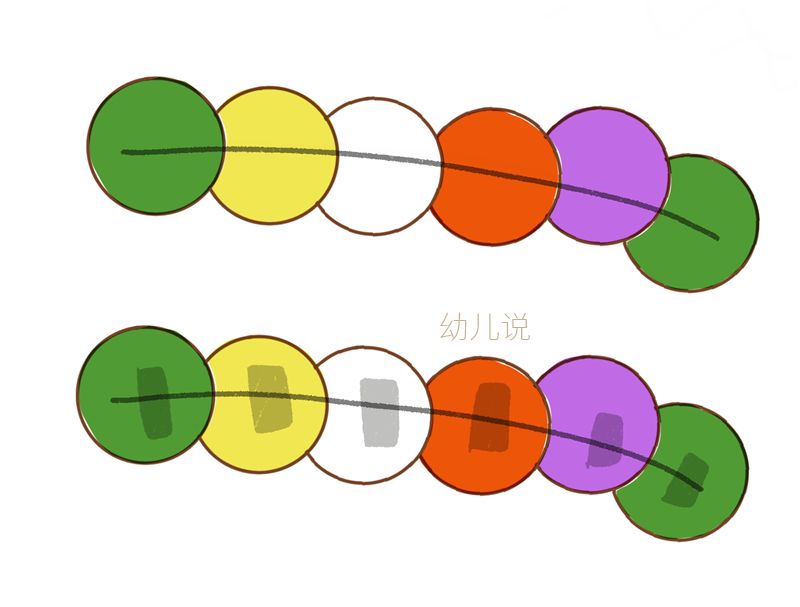 步骤4,翻过来,一条手工彩虹毛毛虫就做好了,因为后面粘着细绳,毛毛虫的身躯关节也可以活动啦。