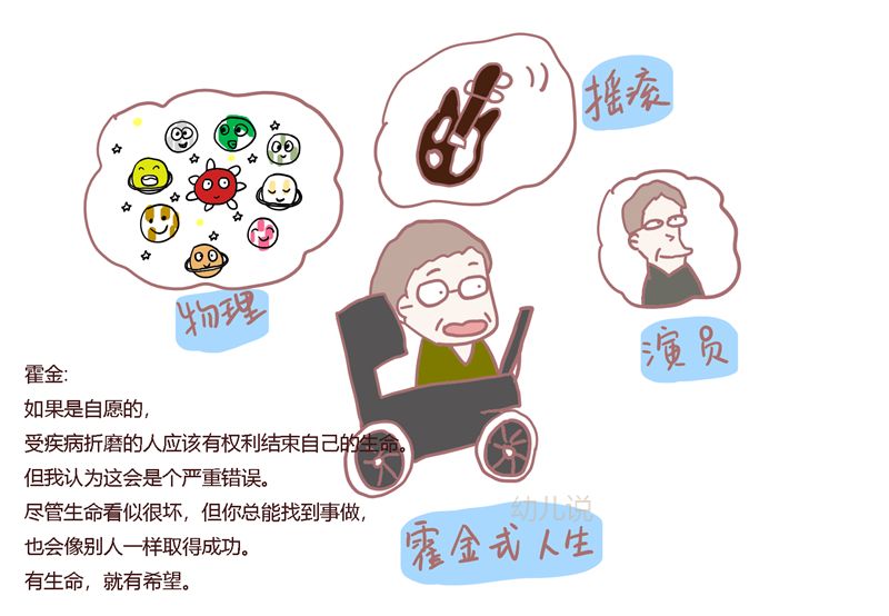 昨晚快要睡着时,儿子突然问:“妈妈,霍金老爷爷的人生这么‘好玩’(精彩),他为什么还要走呢?”