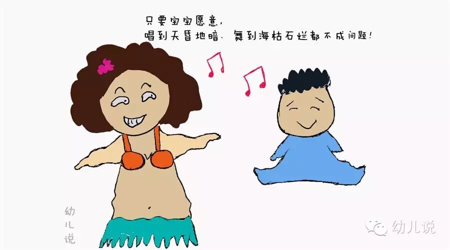 苦学儿歌,操着杀猪的嗓音给宝宝唱歌、扭着肥壮的腰肢给宝宝跳舞,只是为了博宝宝甜甜一笑。