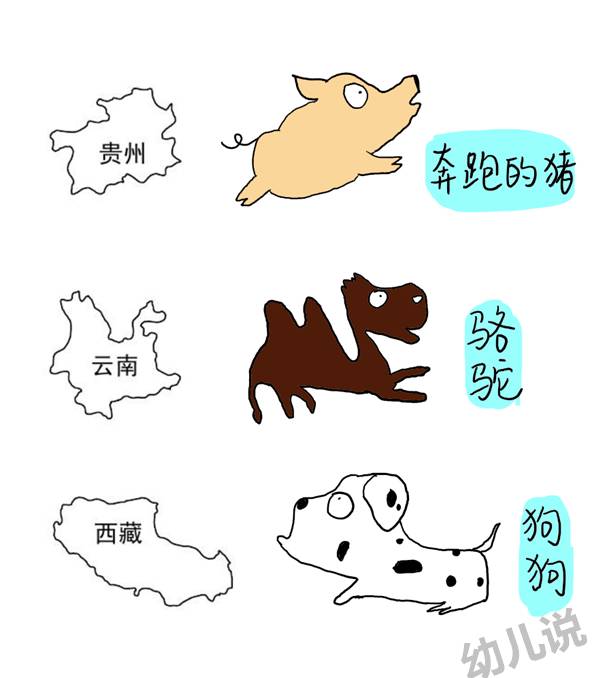我们让孩子看抽象的地图时,孩子看完往往不留一点儿痕迹,大概只记得几个突出的地标,也分不清哪里是哪里,这其实跟孩子的思维发展有关。学前儿童和小学低年级学生的思维以具体形象思维为主,即依靠事物的具体形象才能思考,难以理解和记住抽象的事物。所以对于年幼孩子来说,我们常见的地图都比较抽象,为了方便孩子们学习,幼儿说专门手绘了各地方的地图,孩子们学习起来更有趣更容易。
