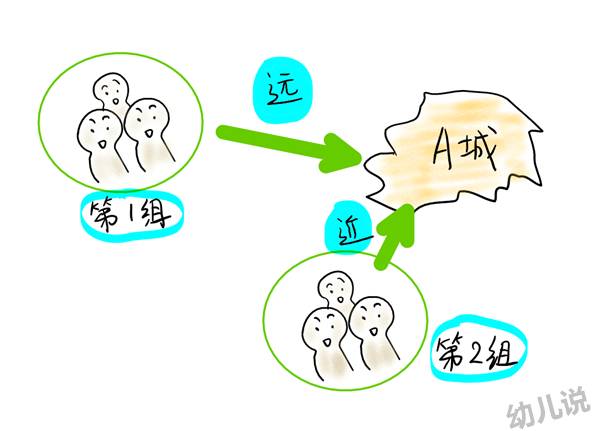实验人员让人假想要到某个目的地(A城),然后把这些人按照居住地的远近分成了1组和2组,第1组人的居住地离A城很远,第2组人的居住地离A城较近。实验人员让两组人分别提供到达A城的所有能想到的天马行空的交通方式,结果第1组人给出的最多,也最有创意性。(看下图)