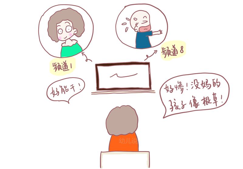 接着我随手切换到8频道,里面播放的是一部亲子剧。一位妈妈陪儿子在公园捉蚯蚓总是失手,“哈哈哈,妈妈,你好笨……”快乐的笑声吸引了一位陌生的男宝宝,那位男宝宝看样子刚学会走路,摇摇晃晃地跑过来,满眼期待地喊陌生人为“妈妈,妈妈……”。他的奶奶赶上来,尴尬地说:“不好意思,孩子不懂事,他是想妈妈了”……看得我的眼泪差点掉下来了,“好惨,没妈的孩子像根草”。