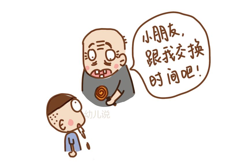 小男孩心想,“我不认识时间,也不知道时间有什么用。棒棒糖比时间好吃,换就换”。
