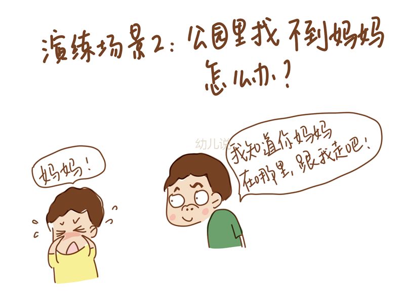 宝宝们3岁后,就可以接受防拐模拟演练。暑假里,父母陪伴孩子进行防拐模拟演练时,可以从下面几种场景进行: